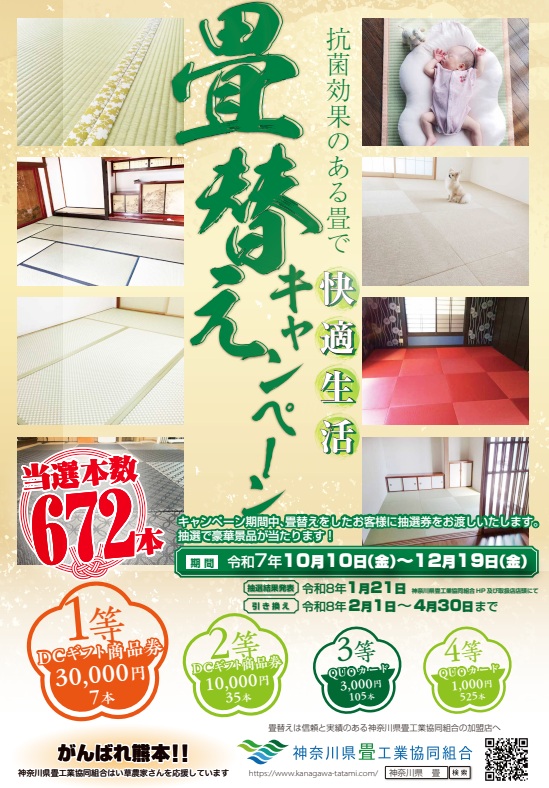 神奈川県畳工業協同組合主催、畳替えキャンペーン開催中です。